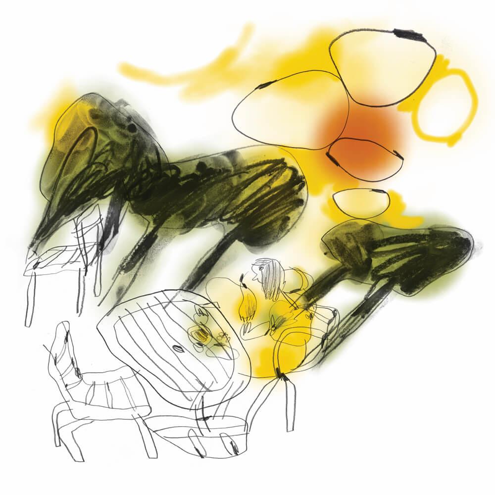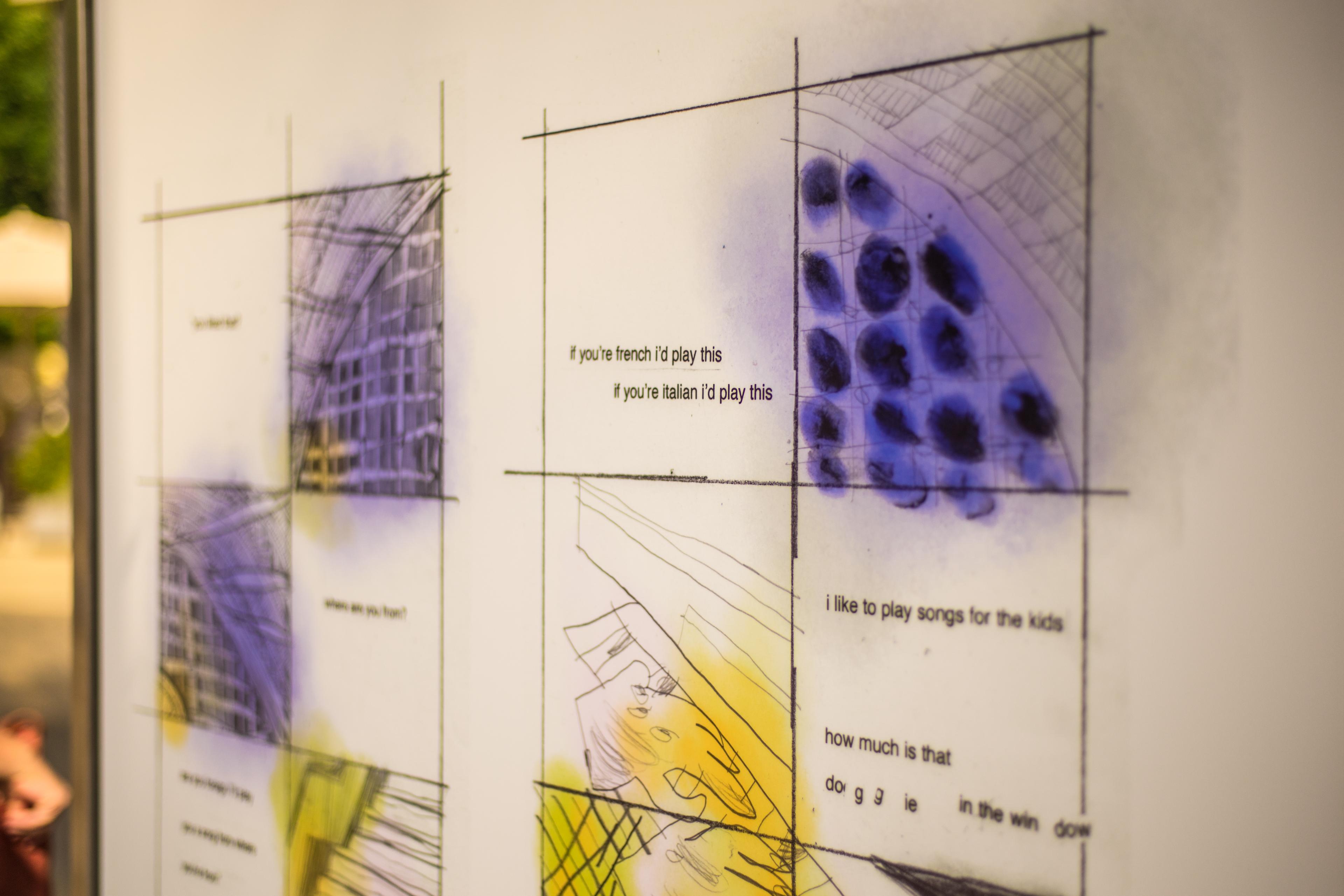 Alongside the drawings were comics that recorded resonant encounters: a poignant chance conversation with a piano player at St Pancras station, and memories of a hot afternoon on Crofters Way.
