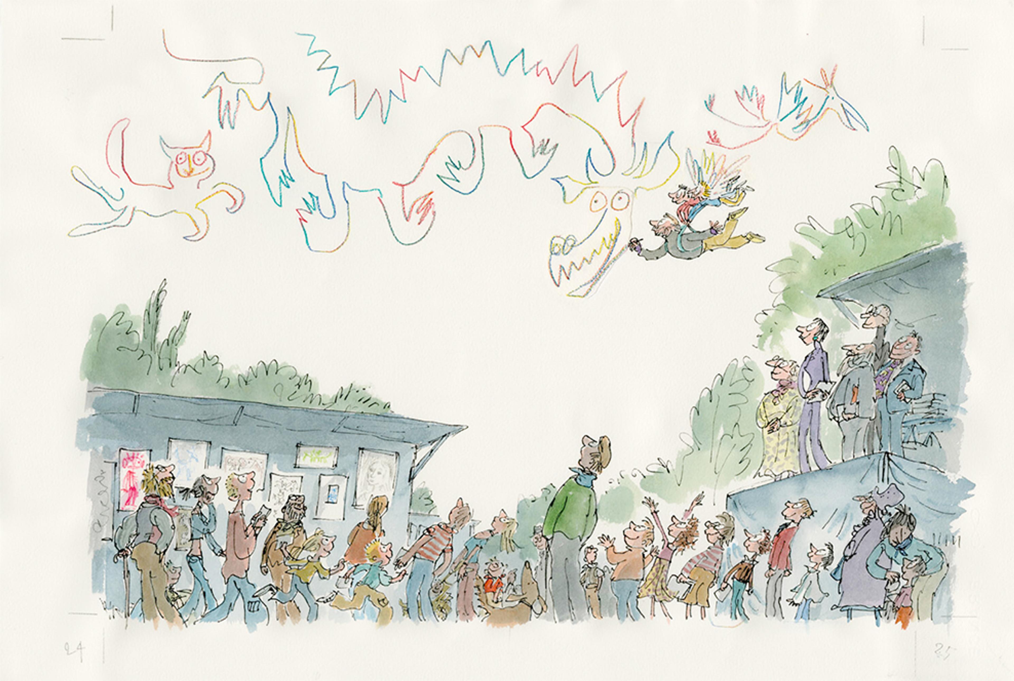 Inspired by Quentin Blake’s picturebook Angel Pavement, in which Corky and Loopy use magic pencils to enable their friend Sid and his pavement art to soar into the sky, Illustration Angels are a community of supporters who share the Centre’s commitment to illustration and its impact on our lives.