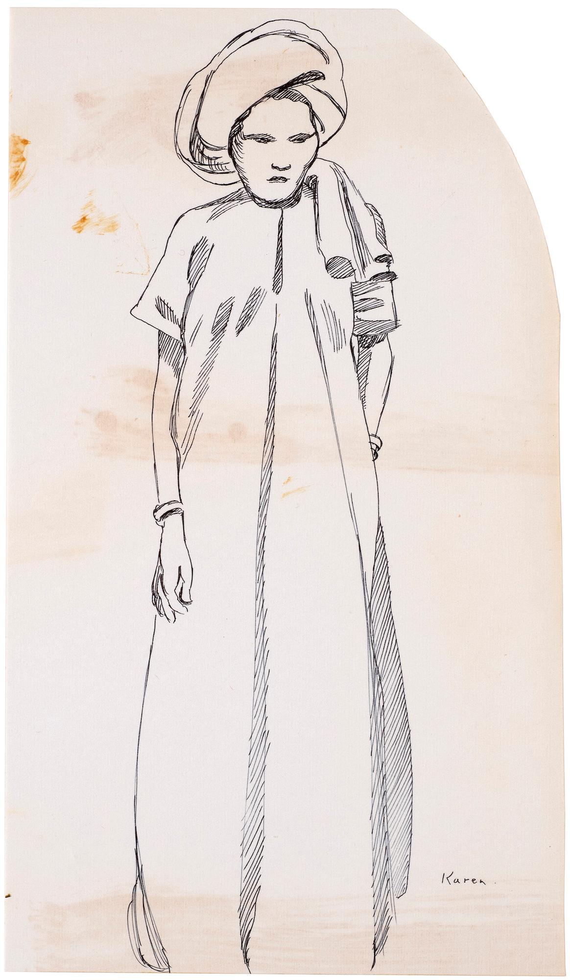 This drawing was used as one of the final illustrations printed in Ayer's publication Oriental* Costume (1974).
