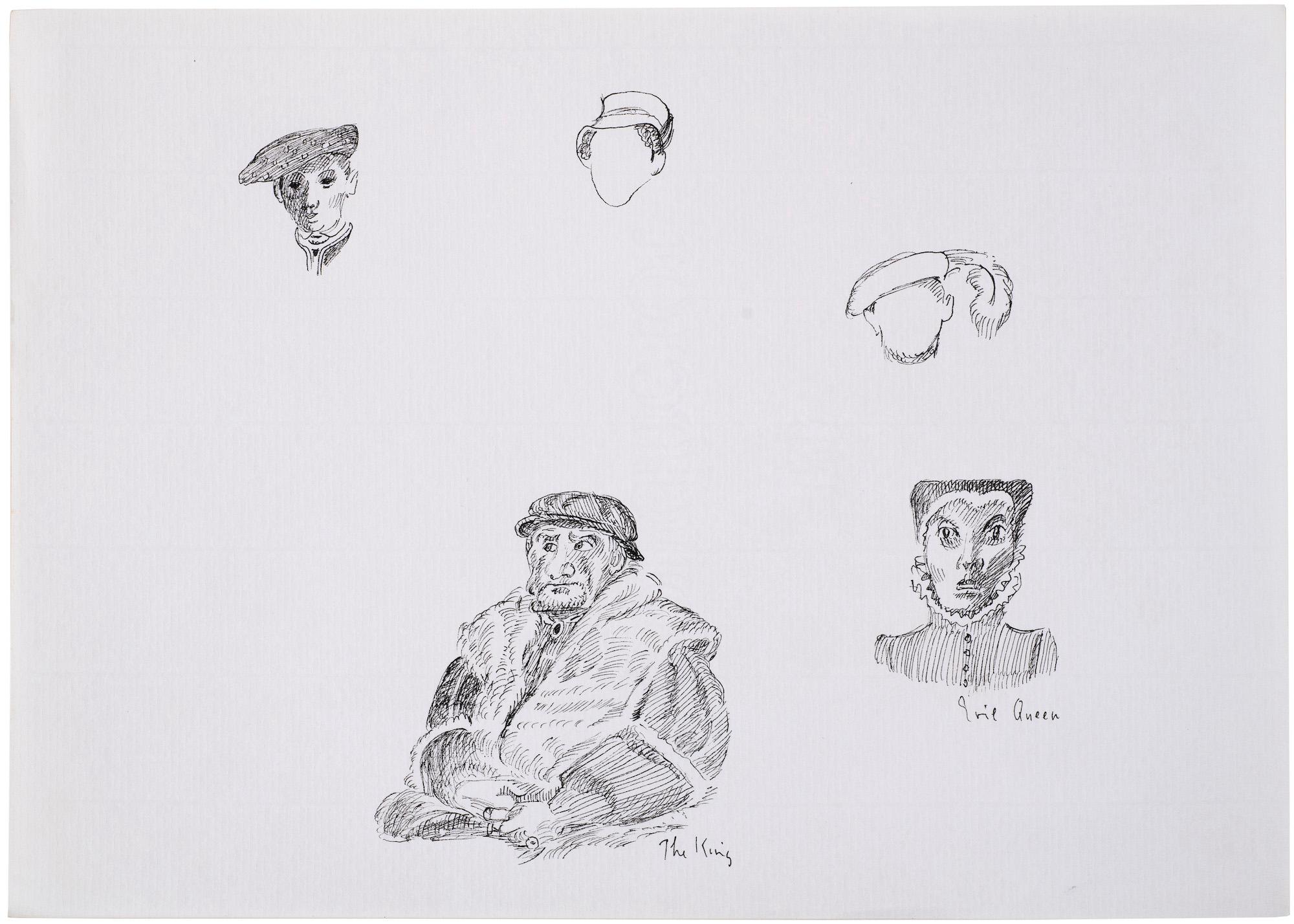 Ayer often used a sketchbook to record her observations and ideas for book narratives and fashion designs. The context for this drawing is unknown.