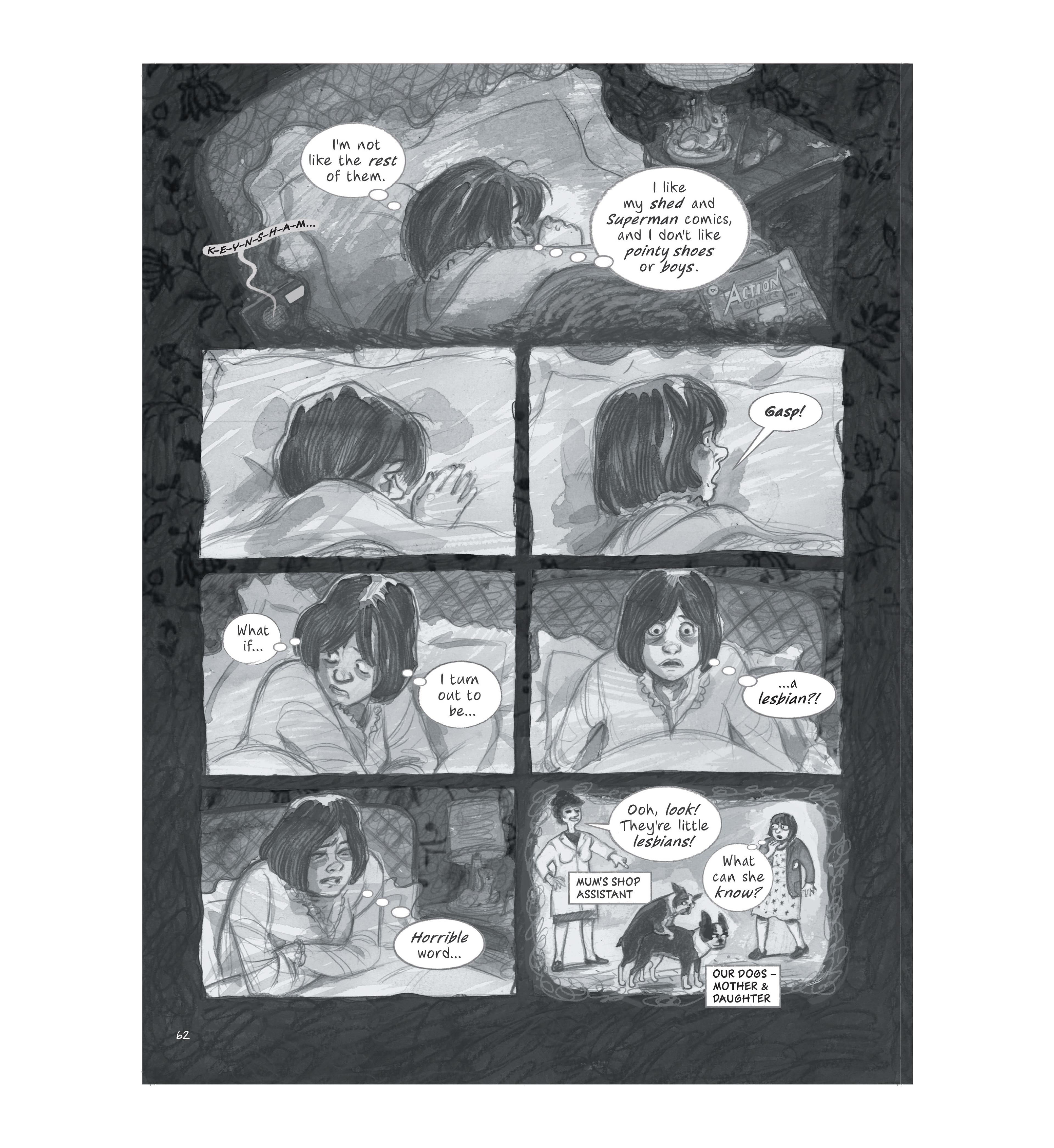 “A stunning achievement — as a graphic study of LGBT history, and as a memoir of growing up gay from the 1950s onwards. Kate’s fluid and tellingly detailed drawing reveal not only the frustrations and traumas of lesbian life, but also the laughter and camaraderie … and a glorious cavalcade of gay icons.”