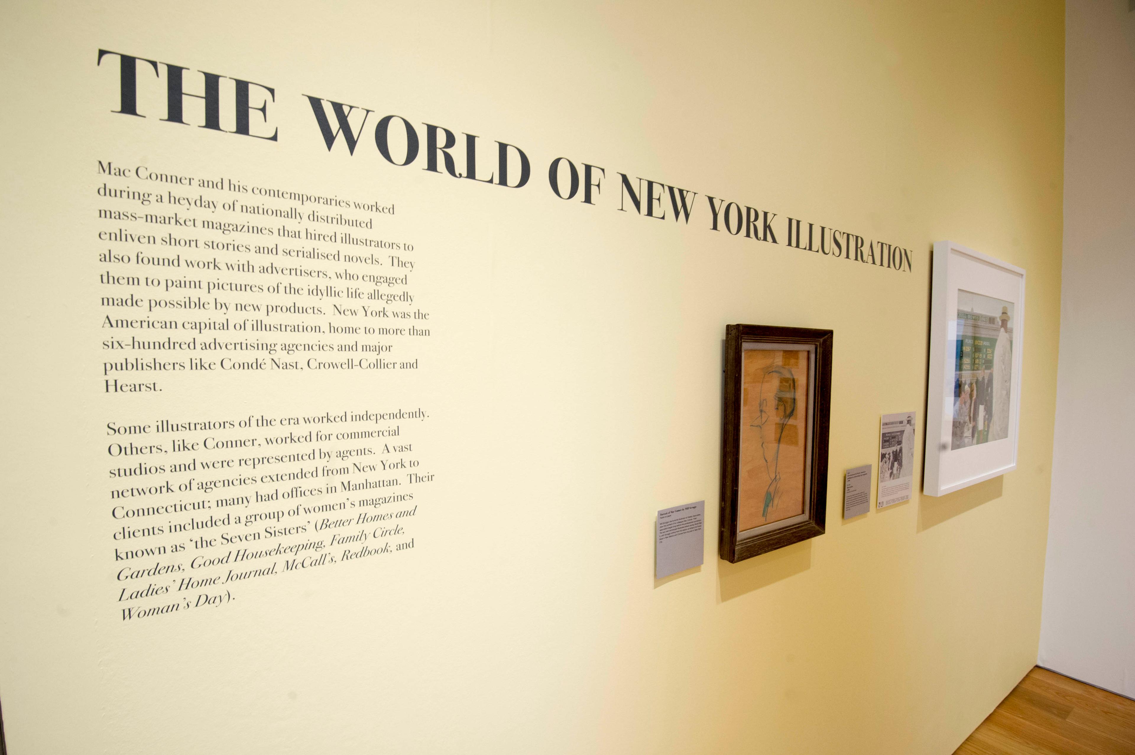 The exhibition presented Conner's published work alongside reference photos, preliminary designs and correspondence with his editors and art directors. It also featured a selection of fiction stories accompanied by illustrations from Conner and his contemporaries, as well as advertising tear sheets for major clients such as Ford, United Airlines and AT&T.