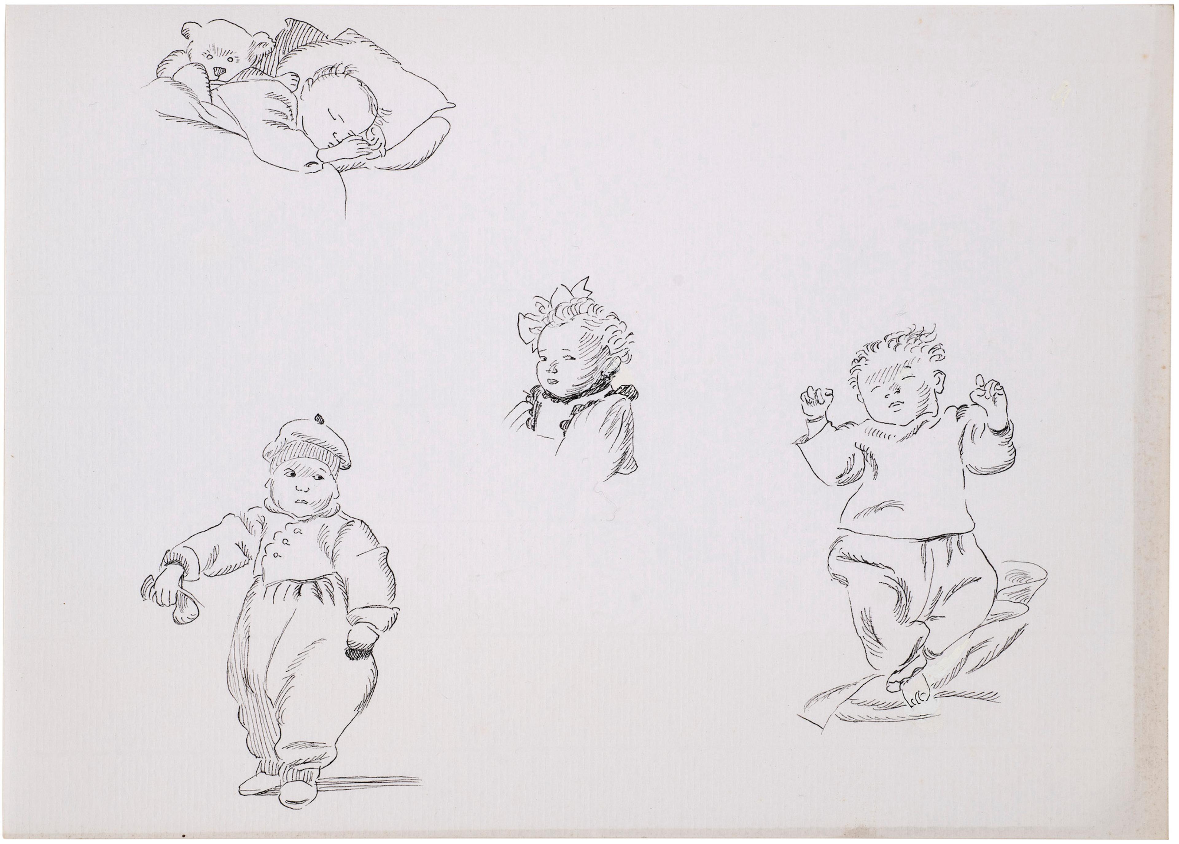 Ayer often used a sketchbook to record her observations and ideas for book narratives and fashion designs. The context for this drawing is unknown.
